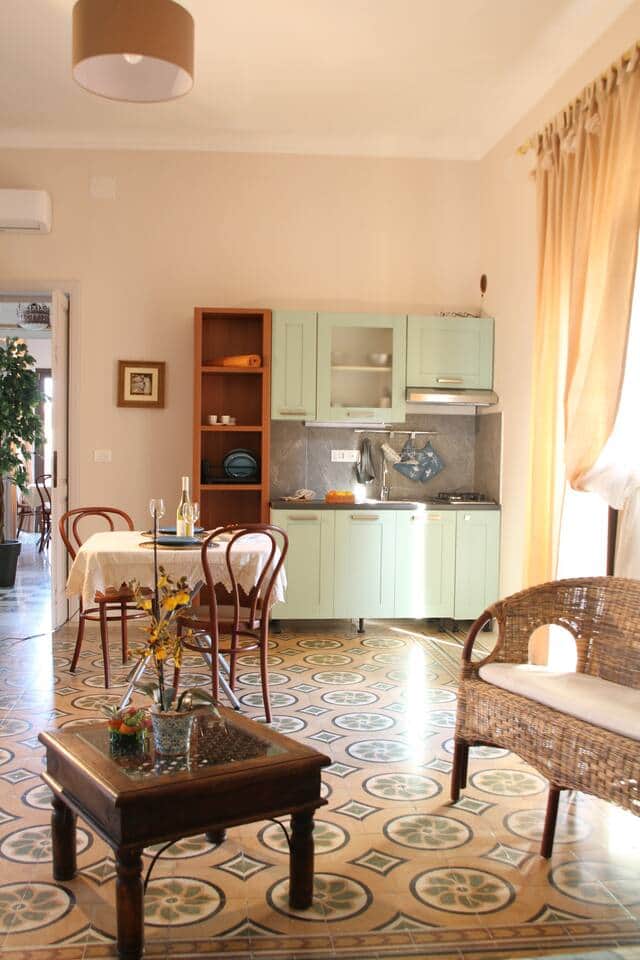 Zagara: primo piano, la regina della casa, l'antica camera da letto di mia bisnonna. Affaccia sia sul cortile interno che su Via Nazionale, ha l'angolo cucina, il bagno, l'aria condizionata, il letto alla francese, microonde, bollitore, tostapane, macchina del caffè, frigo e congelatore.